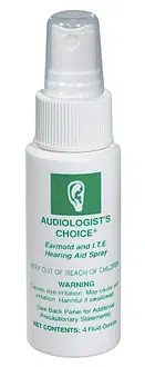 SPRAY:There are some excellent sprays that are specifically for hearing aid cleaning.  It is important to not directly spray the hearing aids.  Spray into a cloth or tissue and then gently wipe the hearing aids.  The cloth should be damp, not soaking wet, when cleaning the hearing aids using this method.